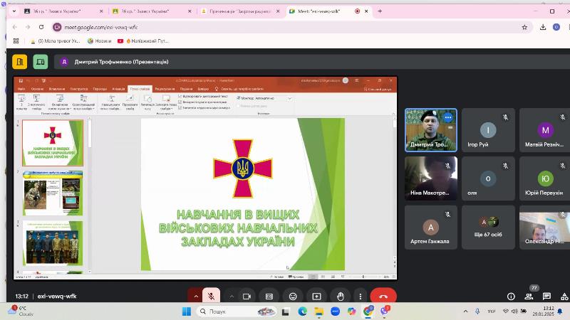 29.01.2025 року з учнями закладу була проведена онлайн зустріч з представником військового інституту танкових військ Національного технічного університету «ХПІ» Володимиром Сінько.