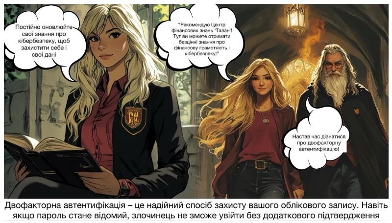 Вітаємо здобувачів освіти групи №36 Бондаренка Руслана, Ганжалу Артема та їх наставника, викладача фізики Шатову Олену Дмитрівну, з перемогою в конкурсі коміксів «Таємниці щоденника Тома Редла». Конкурс відбувався в межах марафону #ШахрайГудбай, організованого Національним банком України в рамках Всеукраїнської інформаційної кампанії з протидії платіжному шахрайству. Творча група представила не просто комікс «Ґоґвортс під загрозою: Пригода з чарівним щоденником», а цілу магічну пригоду, де головна героїня Ліза, відмінниця факультету Грифіндор, випадково повідомила зловмиснику Тому Редлу пароль від власного шкільного акаунту і тим самим під загрозою опинилась вся шкільна база Ґоґвортсу. Презентований комікс – це можливість нагадати про основні правила платіжної безпеки якомога більшій аудиторії та унеможливити наслідки шахрайських дій.